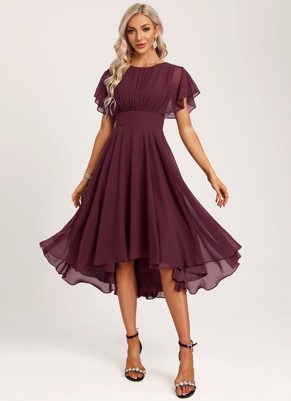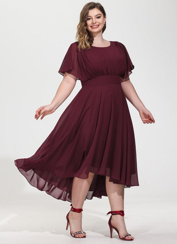 Cette robe cocktail Bourgogne fluide est une véritable invitation à la fête. Dès que vous l'enfilez, vous sentirez la douceur de sa mousseline et apprécierez la coupe flatteuse qui sublime votre silhouette. Le col rond classique offre une base élégante, tandis que la longueur asymétrique apporte une touche de modernité et révèle subtilement vos jambes, idéale pour danser toute la nuit. Le dos en V ajoute une note de raffinement inattendue, garantissant que vous serez éblouissante sous tous les angles. Avec son soutien-gorge intégré, elle vous assure un maintien parfait et une tranquillité d'esprit, vous permettant de profiter pleinement de chaque instant sans vous soucier des détails. C'est la tenue idéale pour créer des souvenirs inoubliables.