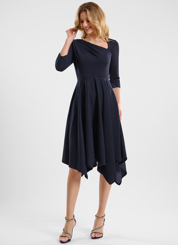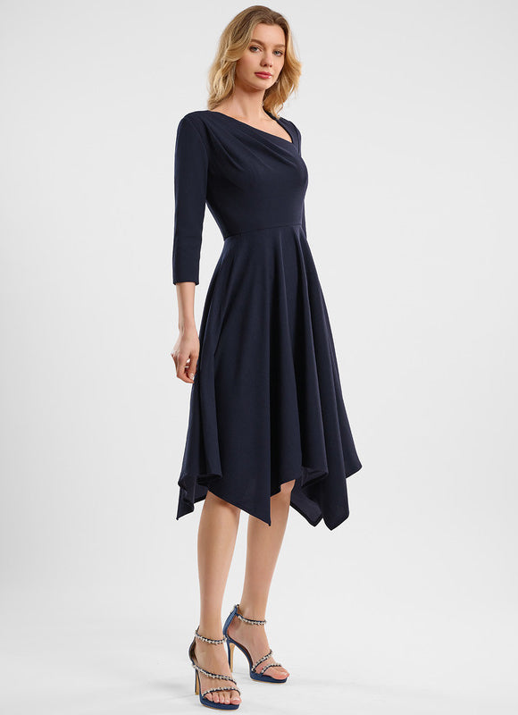 Pourquoi Choisir Notre Robe Cocktail Crêpe Asymétrique Navy ?