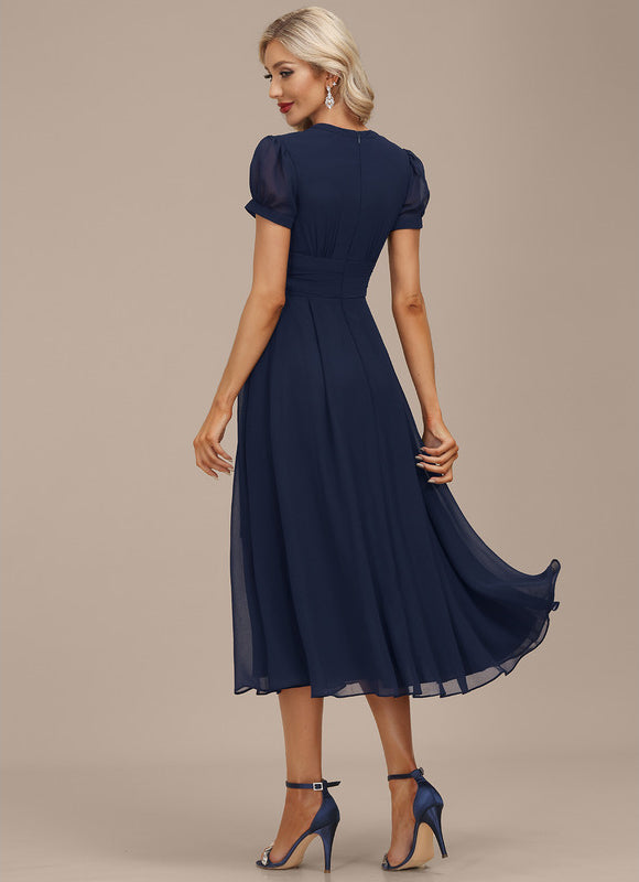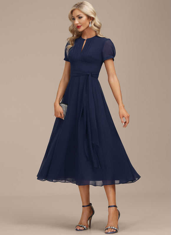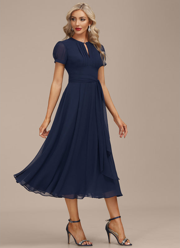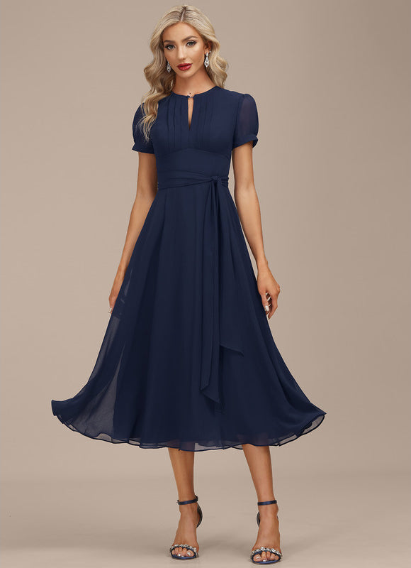 Imaginez-vous glissant dans cette magnifique robe, sa mousseline légère caressant votre peau à chaque mouvement. Conçue pour la femme moderne qui recherche à la fois l'élégance et le confort, notre Robe Cocktail Douceur De Velours est la pièce maîtresse de votre garde-robe pour toutes vos occasions spéciales. Que ce soit pour un mariage, un gala ou une soirée chic, sa coupe trapèze flatte toutes les silhouettes, tandis que son tissu plissé ajoute une touche de raffinement subtil. Sentez-vous confiante et rayonnante, prête à capter tous les regards avec cette tenue qui allie grâce intemporelle et style contemporain.Le Charme Irrésistible de la Robe Cocktail Douceur De Velours