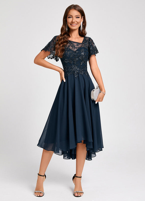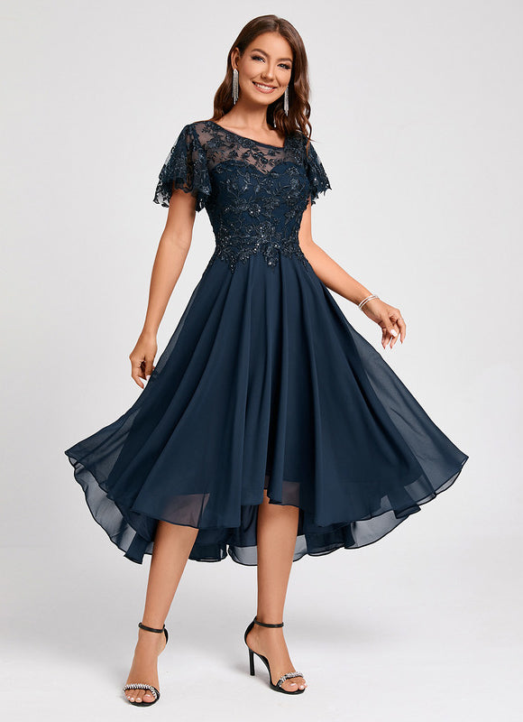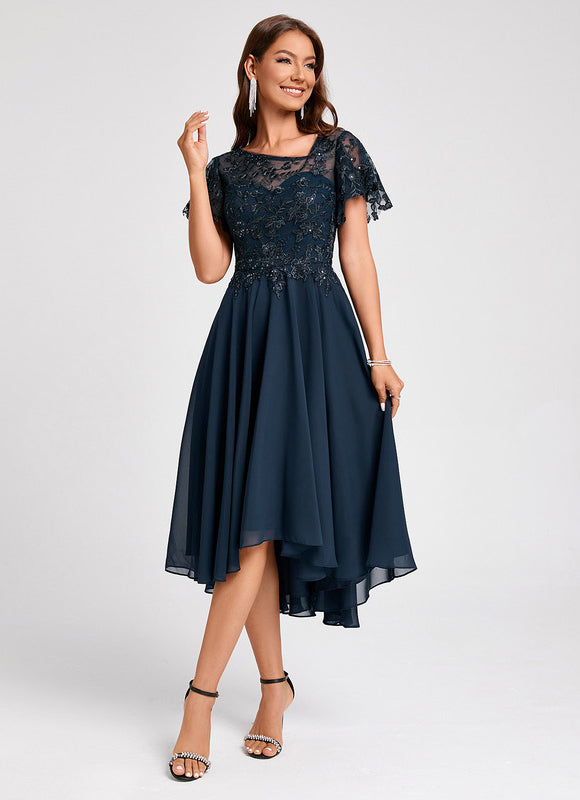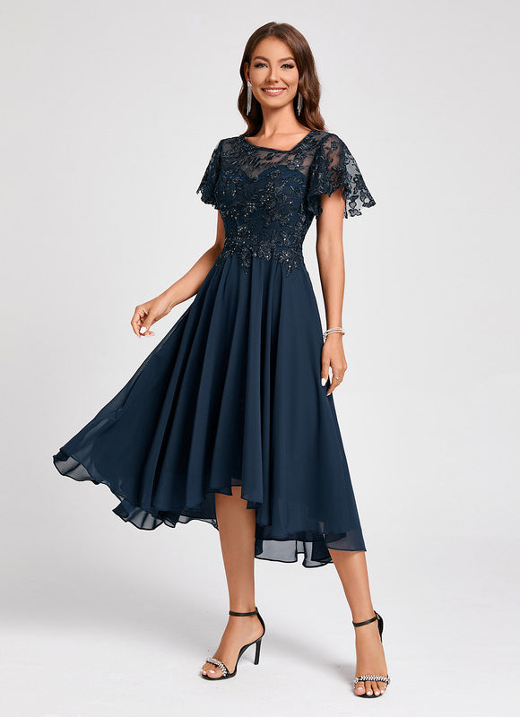 Découvrez les détails qui rendent cette Robe Cocktail Émeraude Couture absolument unique. Le tissu en mousseline offre un tombé parfait et une sensation agréable sur la peau, tandis que les volants délicats et les paillettes finement brodées sur le corsage ajoutent une touche de glamour et de raffinement. Sa forme trapèze flatte toutes les silhouettes, offrant une coupe confortable sans sacrifier l'élégance. Le col asymétrique apporte une modernité audacieuse, et le dos arrondi complète harmonieusement le design, ajoutant une note chic inattendue. De plus, avec son soutien-gorge intégré, cette robe vous assure un maintien parfait et une silhouette impeccable, vous libérant de tout souci.