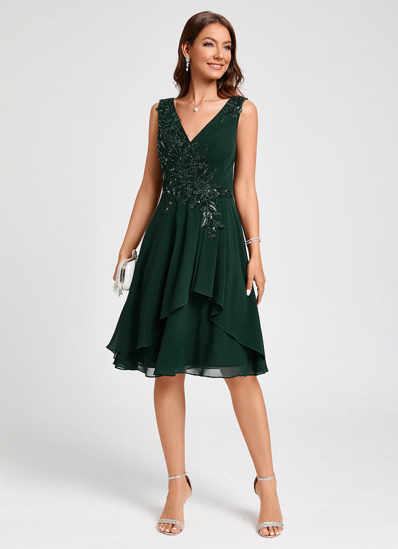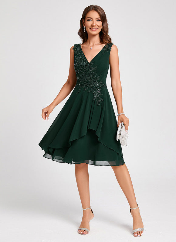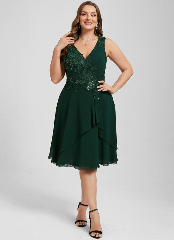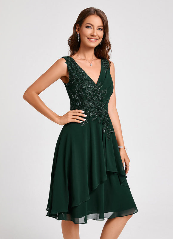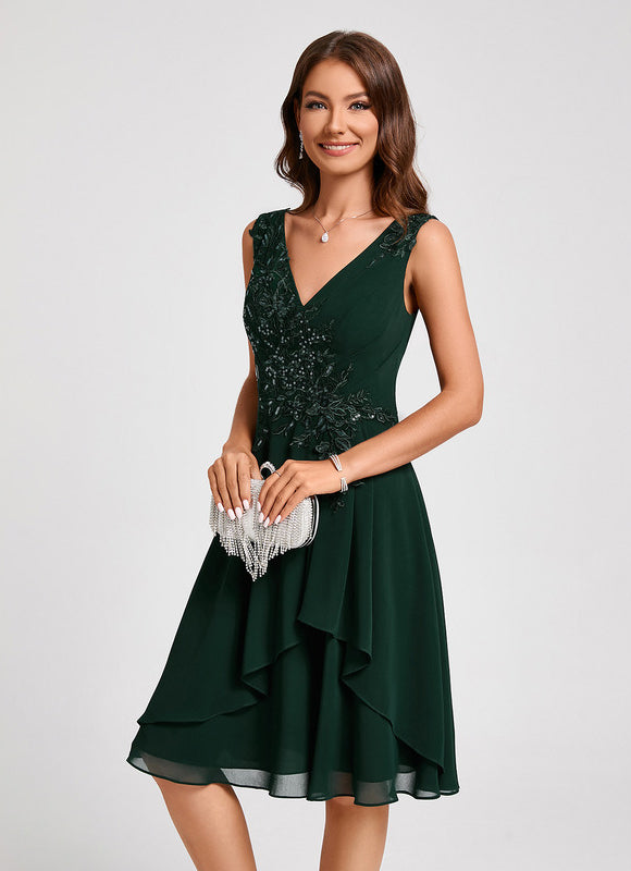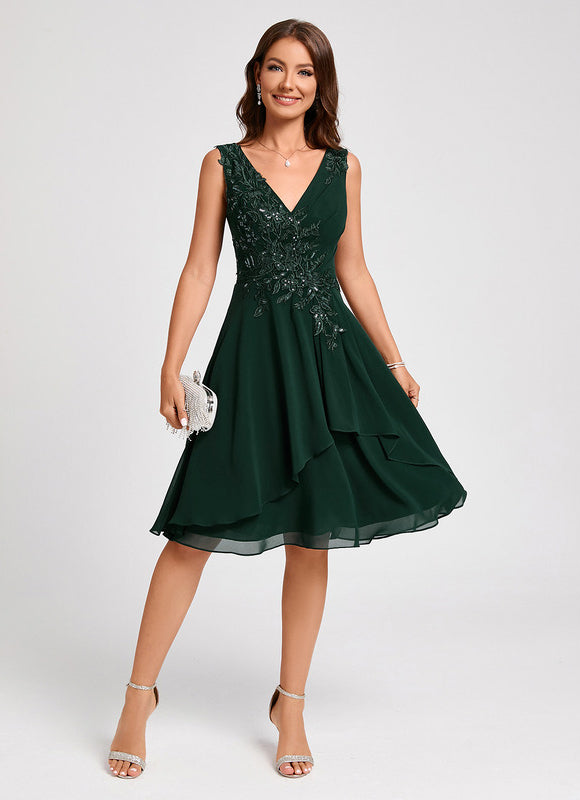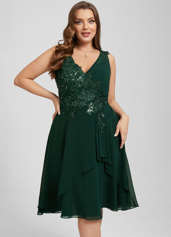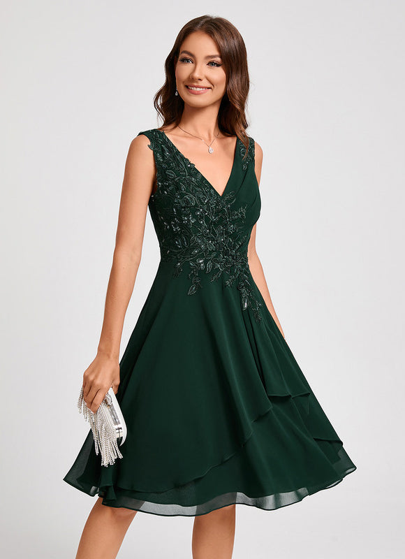 Chaque aspect de cette robe a été pensé pour votre élégance et votre bien-être. Le tissu en mousseline, léger et aérien, offre un tombé parfait et une sensation agréable sur la peau, vous permettant de vous déplacer avec aisance et confiance. Admirez les appliques de dentelle délicatement brodées et les paillettes scintillantes qui ornent le corsage, ajoutant une touche de glamour subtile sans être ostentatoire. Le col en V flatteur met en valeur votre décolleté avec élégance, tandis que le dos en V assorti apporte une touche de sophistication supplémentaire. La coupe trapèze, intemporelle et universellement flatteuse, assure une silhouette élancée et un confort optimal, faisant de cette Robe Cocktail Émeraude Élancée un choix incontournable pour toutes vos occasions.
