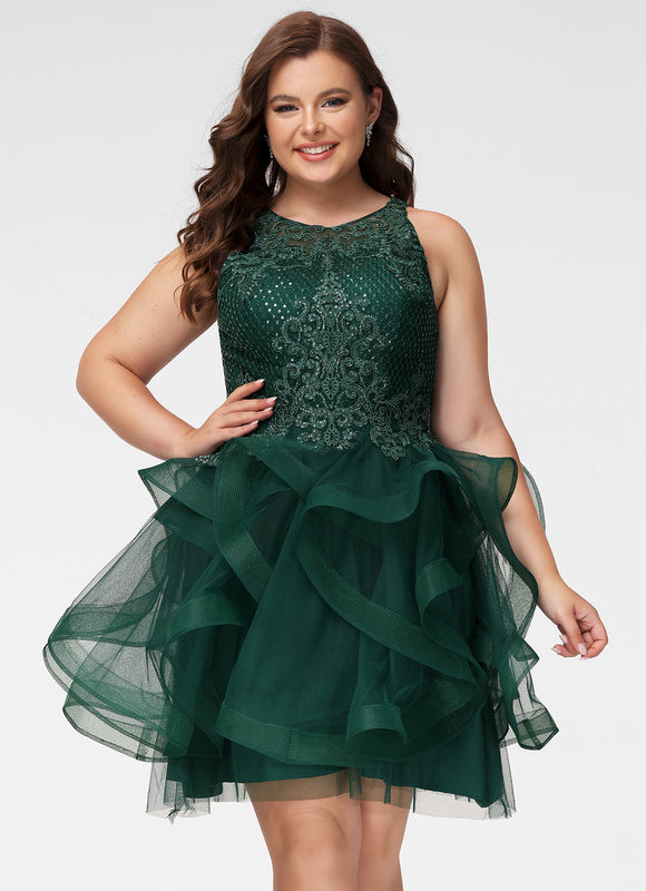 Chaque détail de cette robe a été pensé pour vous offrir une allure de princesse moderne. Le bustier en dentelle est magnifiquement orné de paillettes scintillantes, créant un motif riche et texturé qui attire le regard. Son col rond classique encadre délicatement le cou, tandis que la coupe princesse accentue la taille avant de s'épanouir en une jupe courte et multicouche qui donne cette sensation flottante unique. Cette conception astucieuse ne se contente pas d'être visuellement superbe ; elle assure également une liberté de mouvement exceptionnelle, vous permettant de danser et de vous déplacer avec une aisance totale. Le zip arrière assure un ajustement parfait et une silhouette impeccable.