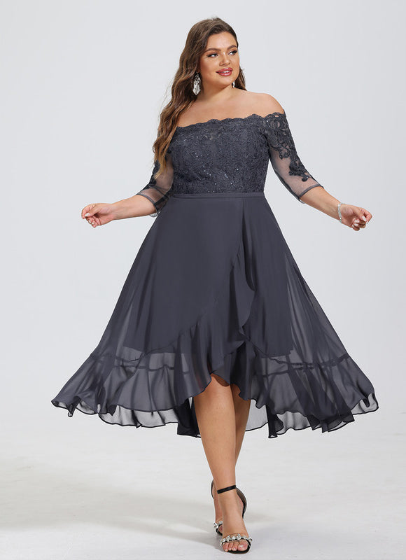 - Silhouette sublimée : Col épaule dénudée élégant et jupe asymétrique moderne pour une allure chic.