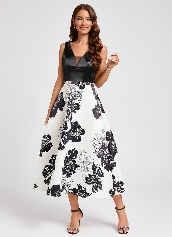 Révélez Votre Élégance avec la Robe Cocktail Fleurie Contrastée