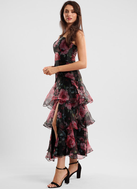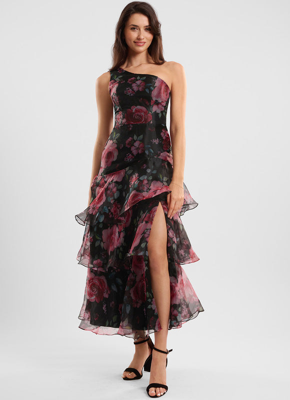 Adoptez le Style Unique de notre Robe Cocktail Florale Asymétrique