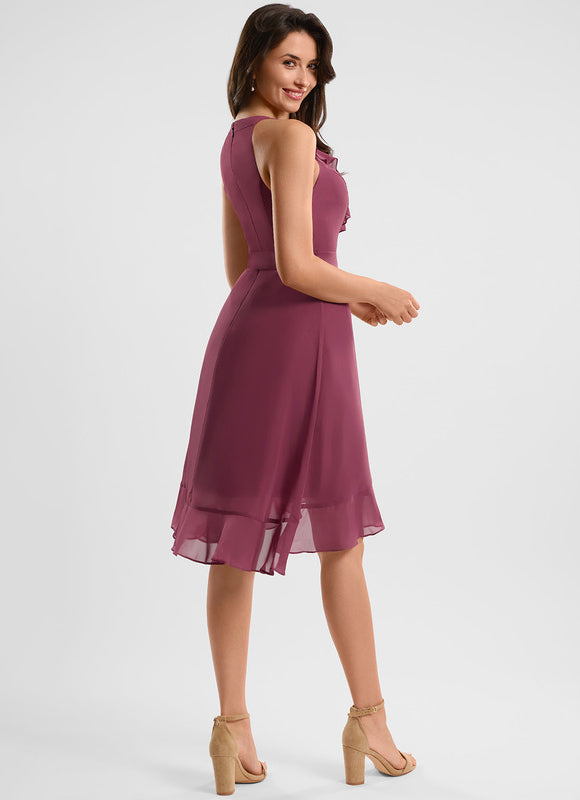 Laissez-vous séduire par la coupe trapèze de cette Robe Cocktail Fluide Vert Pâle, une silhouette intemporelle qui flatte toutes les morphologies, épousant délicatement vos courbes sans jamais les contraindre. Les détails à volants, subtilement placés, ajoutent une touche de romantisme et de dynamisme à l'ensemble, tandis que le col en V allonge gracieusement votre cou, mettant en valeur votre décolleté avec élégance. Sa longueur asymétrique apporte une modernité audacieuse, révélant juste ce qu'il faut de jambe pour une allure chic et contemporaine. Chaque élément a été pensé pour créer un mouvement fluide et une silhouette aérienne, faisant de cette robe un véritable chef-d'œuvre de légèreté.